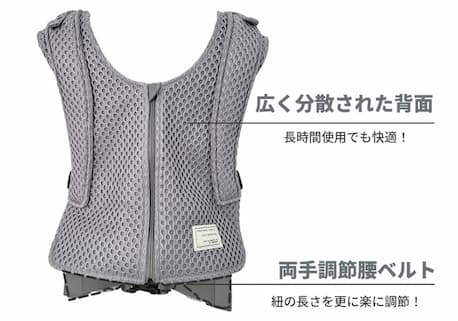 ベスト型のデザインが体全体で支えてくれるので、重さが分散されやすいようです。