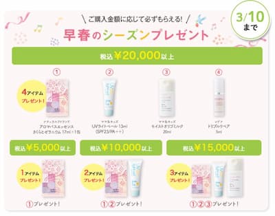 購入金額に応じたサンプルやプレゼントがもらえる
